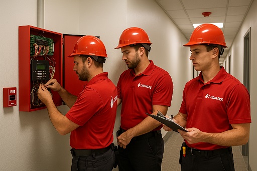 - Installation of synchronized sirens and strobes on all floors.